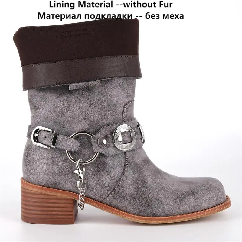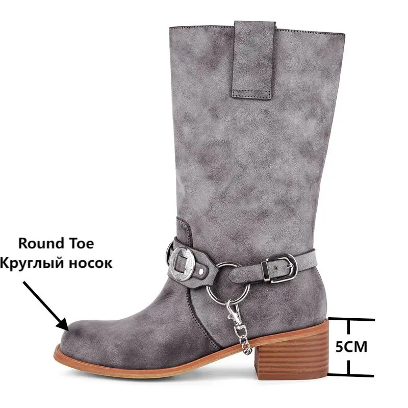 Women Metal Decor Buckle Low Block Heels Boots Wide Knee High Riding Cowgirl Pull on Western Cowboy Boots