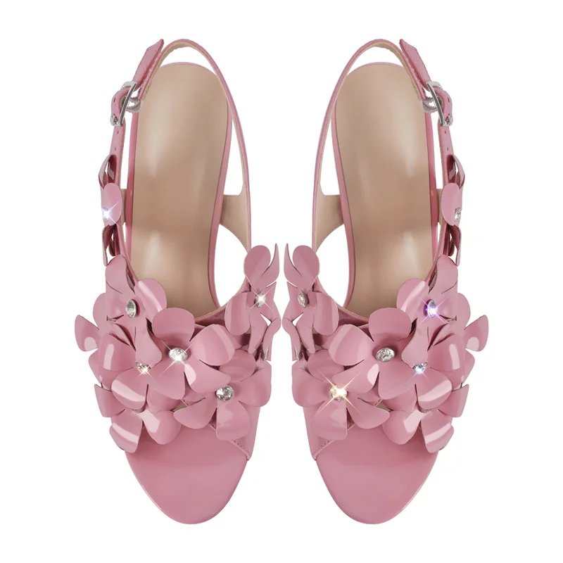 Women Open Toe Pink Patent Leather Platform Chuncky Heel Ankle Buckle Strap Sandals Big Size Flower Punk Sandals