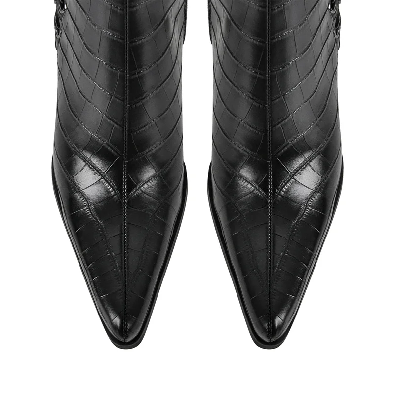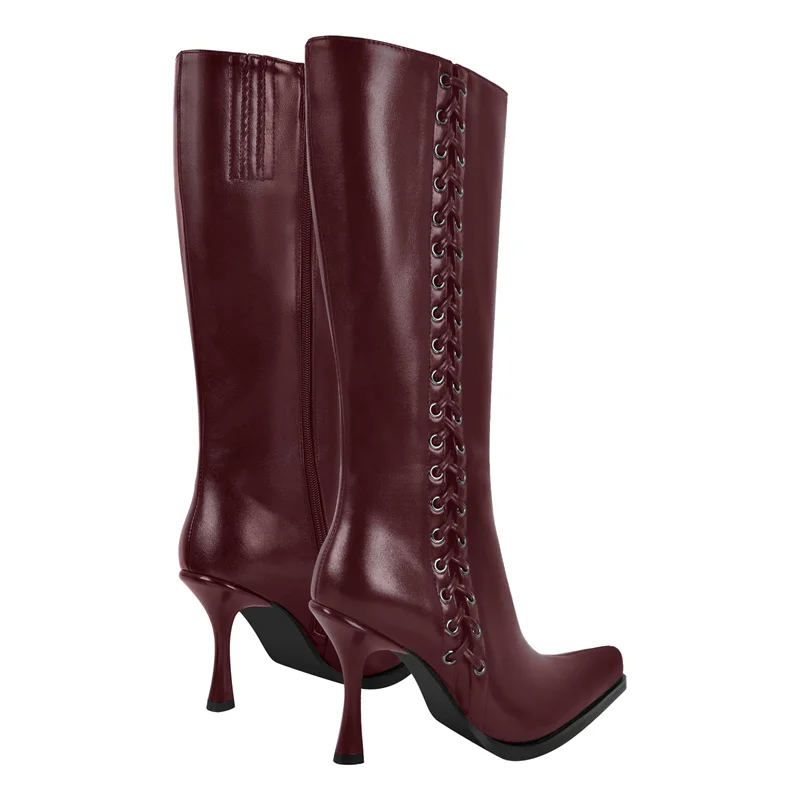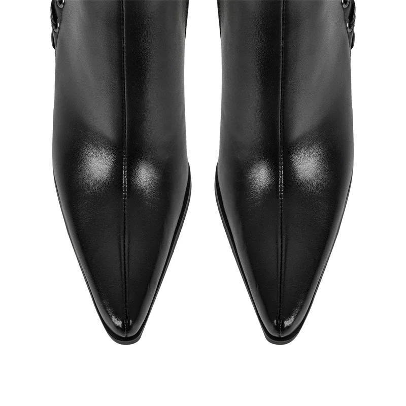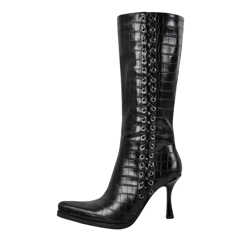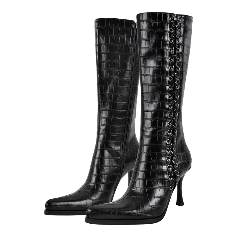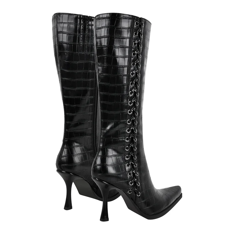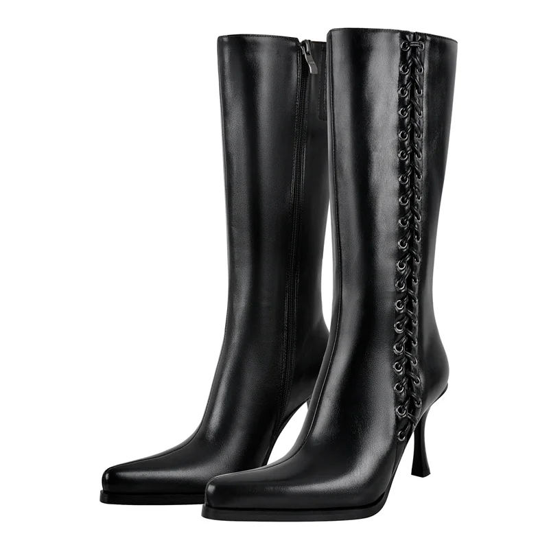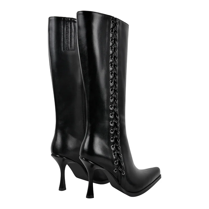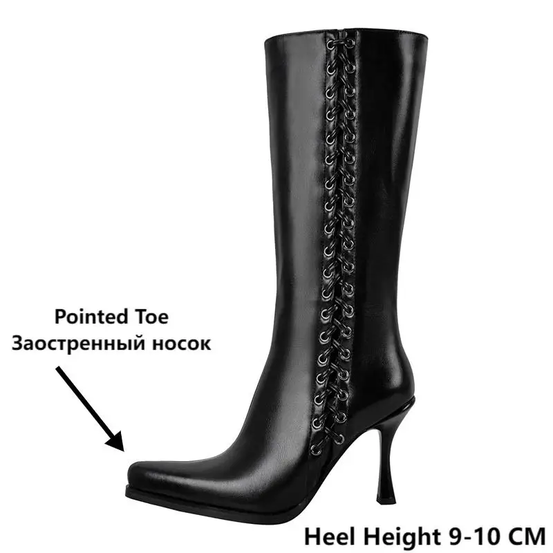 Women Pointed Toe Black Matte Knee High Boots Stiletto Sexy Kitten Heels Side Zipper Winter Boots