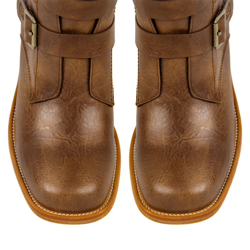 Women Round Toe Mid-Calf Boot Matte Brown Thick Heels Zipper Winter Big Size Buckle Boots