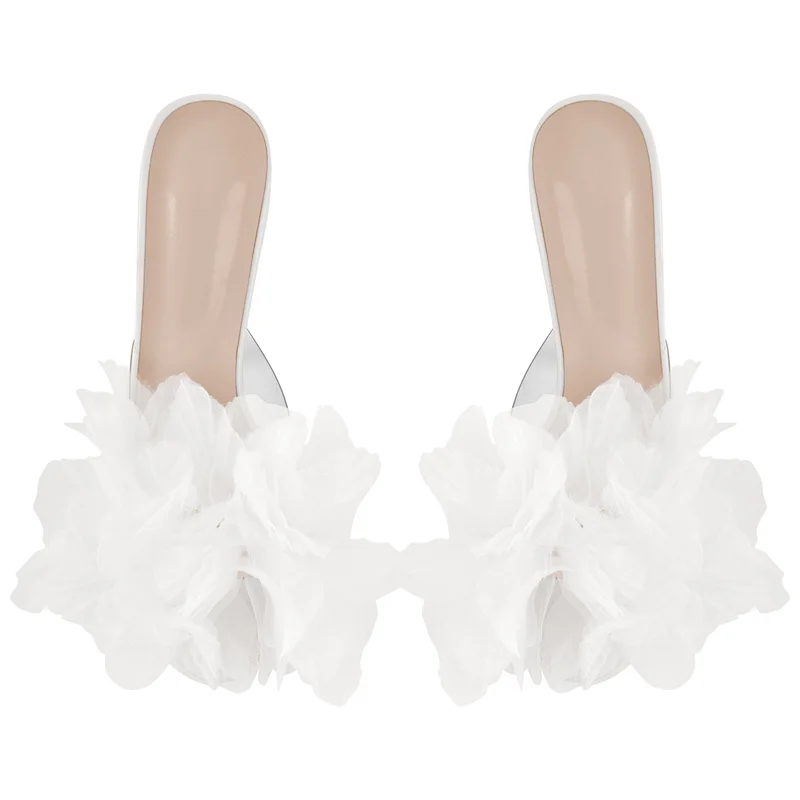 Women White Platform Peep Toe Flower Stiletto Heeled Sandals Wedding Bridal Party Dressing Summer Sandals