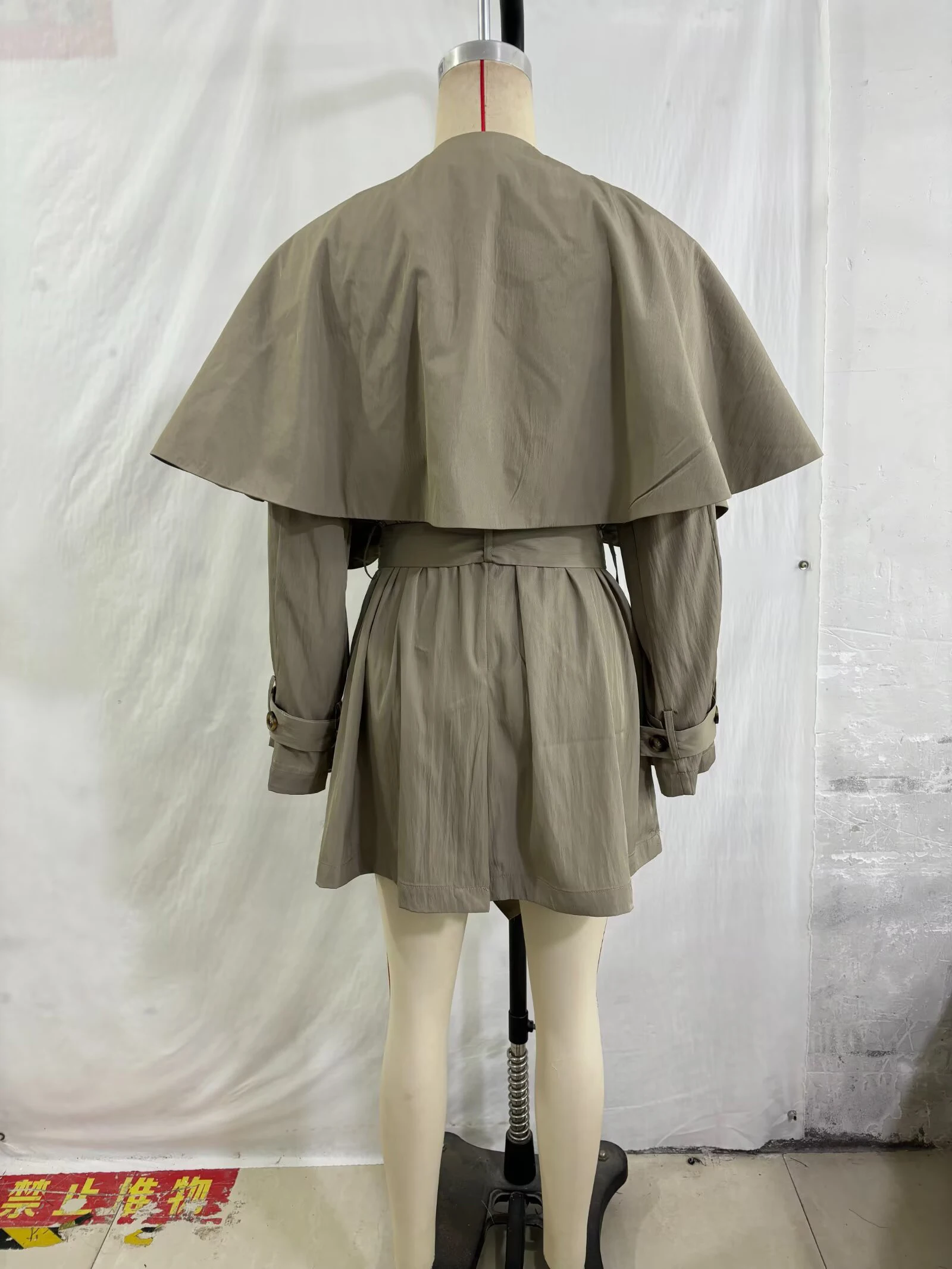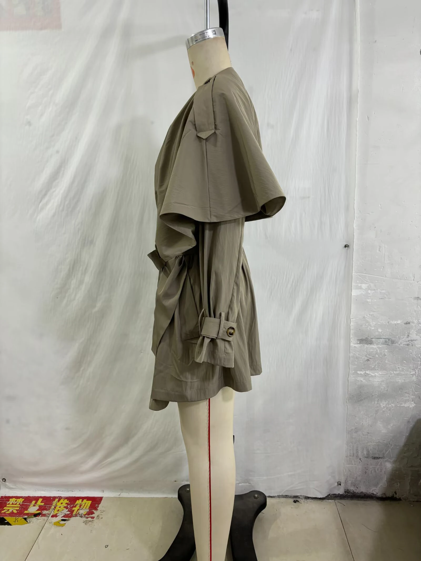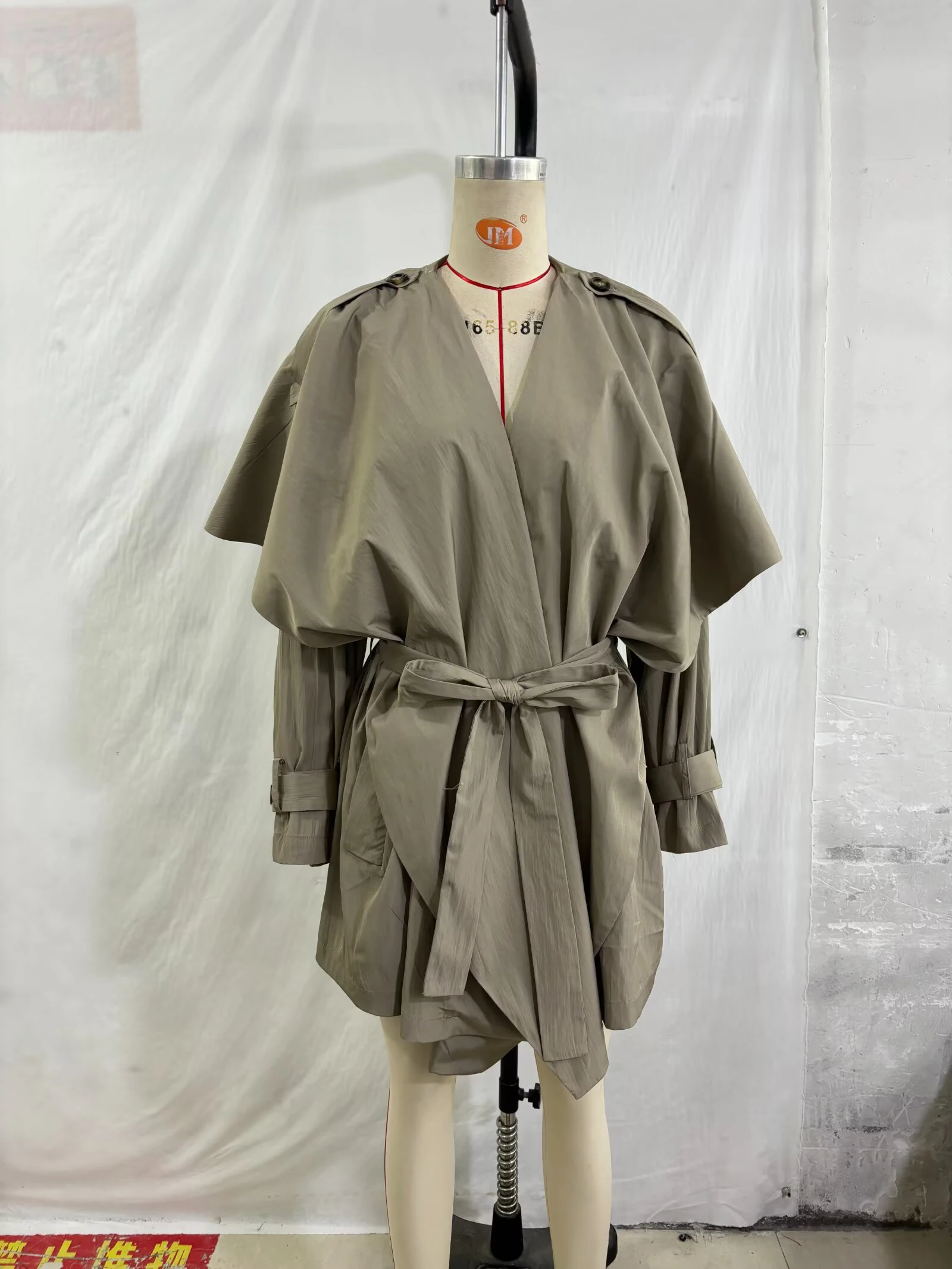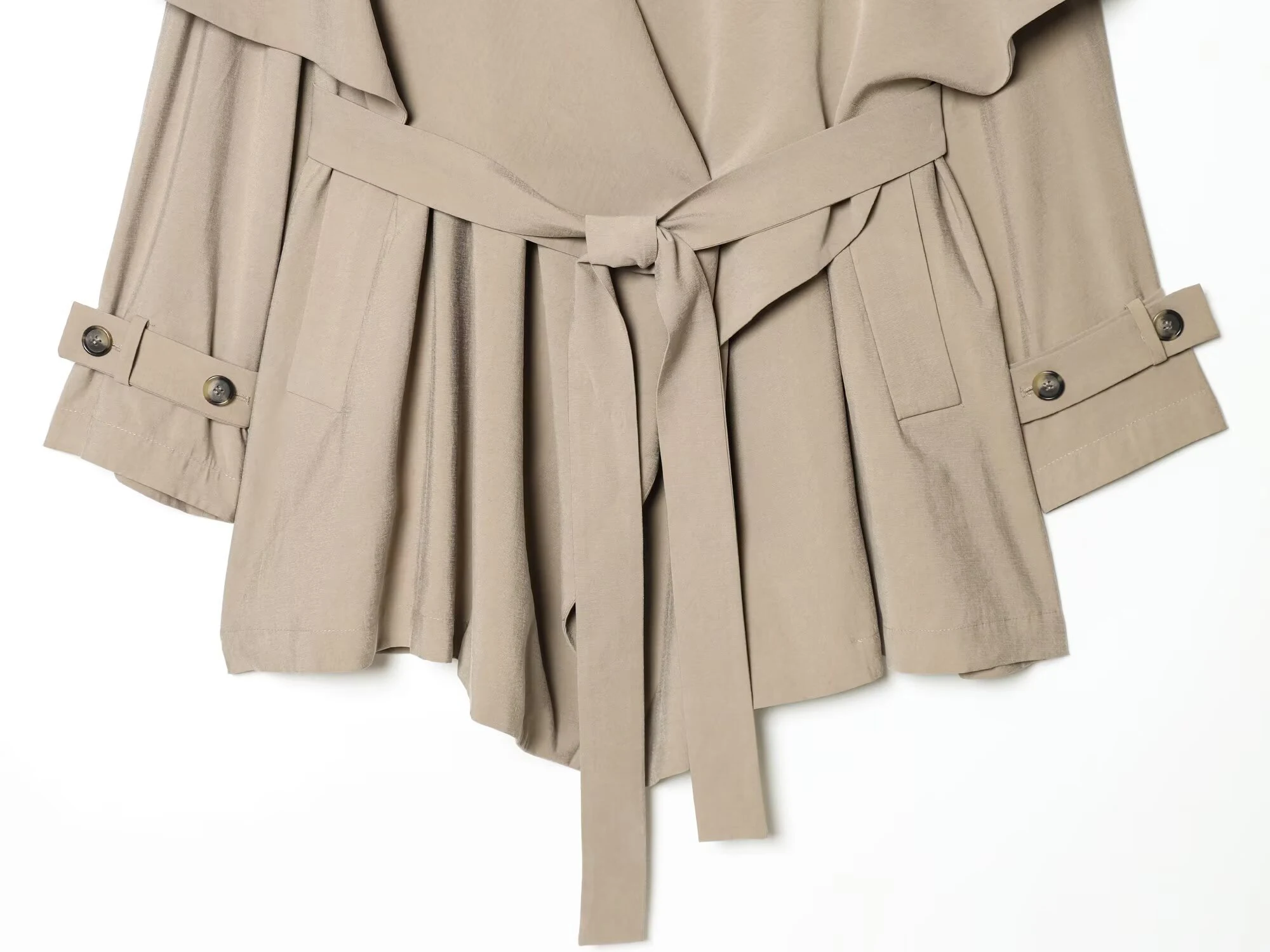 Spring women's V-neck long sleeved butterfly tie tie decoration straight cut hem hanging short windbreaker jacket