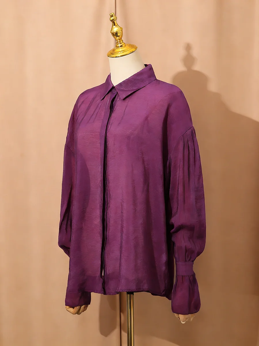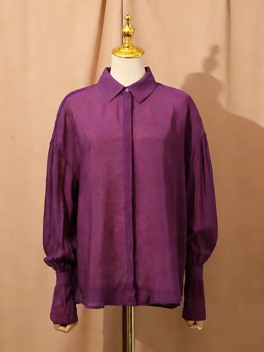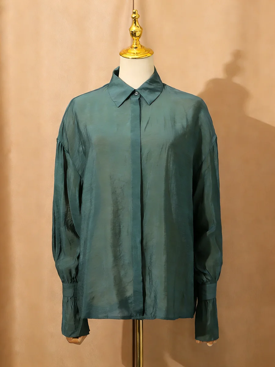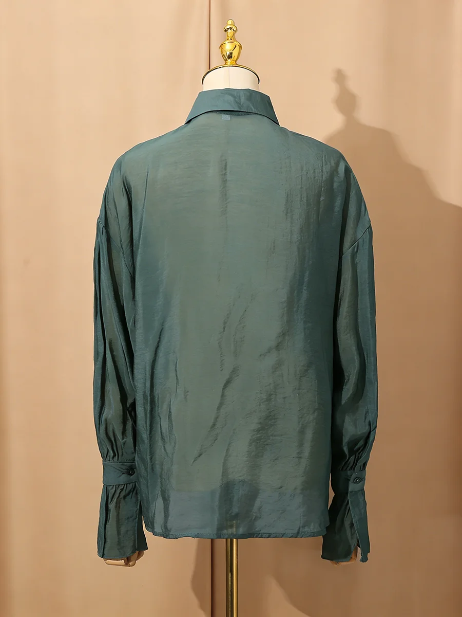 Lazy French Minimalist Style Solid Shirt for Women Lapel Long Sleeve Button Design Sheer Fabric for Daily Street Shopping
