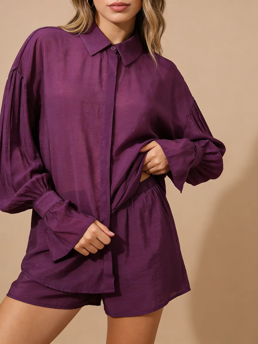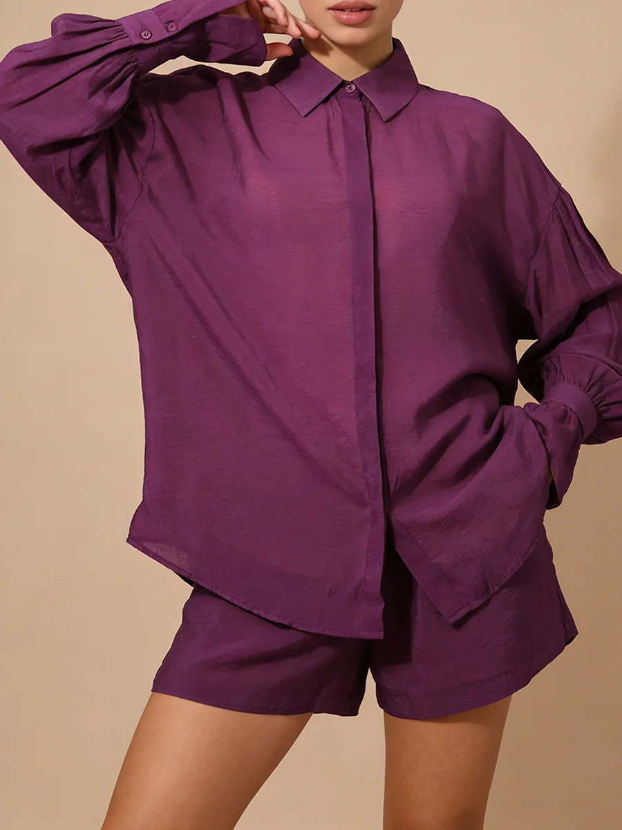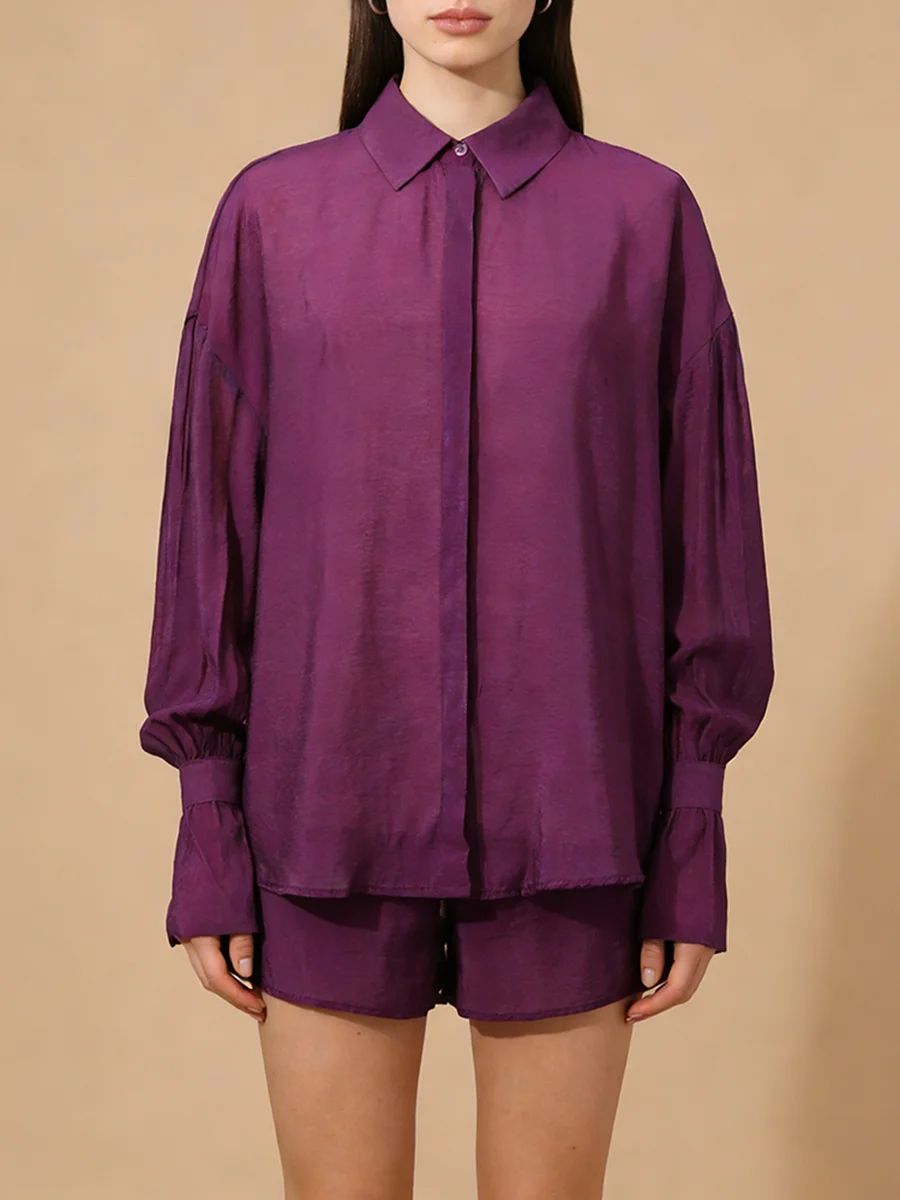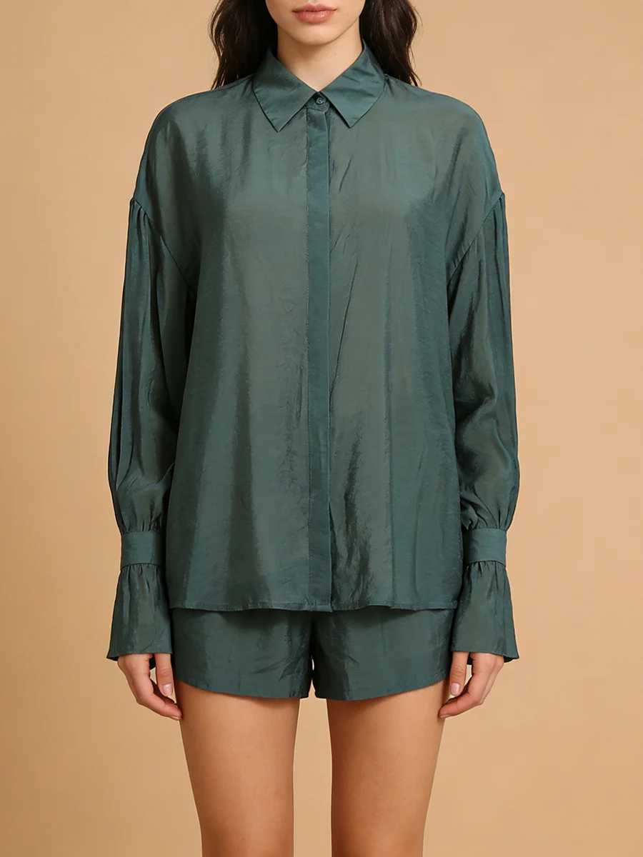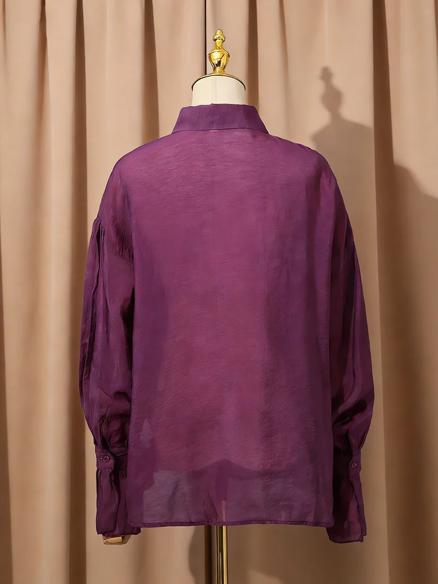 Lazy French Minimalist Style Solid Shirt for Women Lapel Long Sleeve Button Design Sheer Fabric for Daily Street Shopping