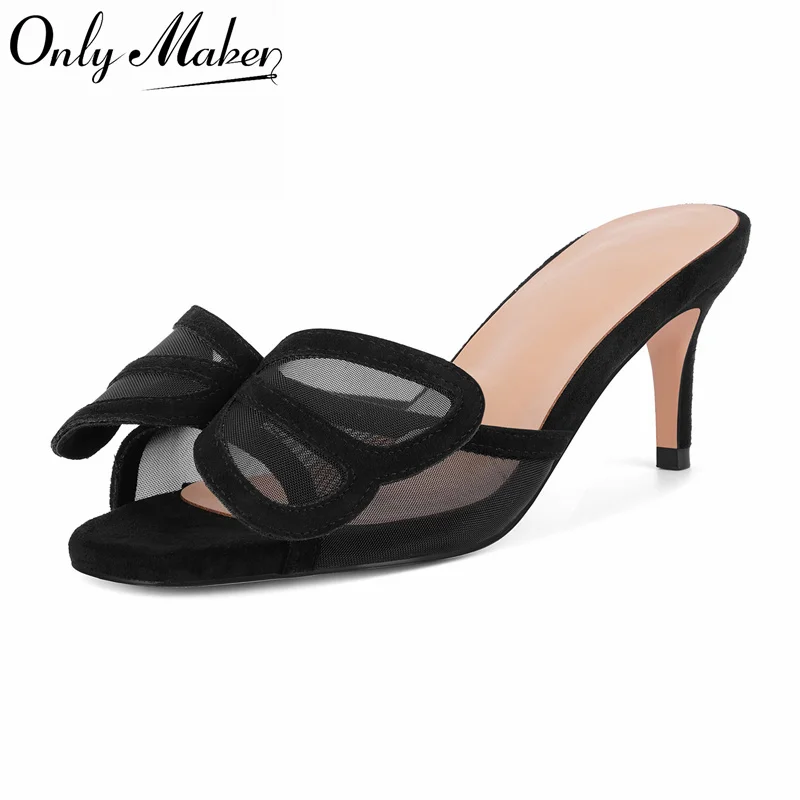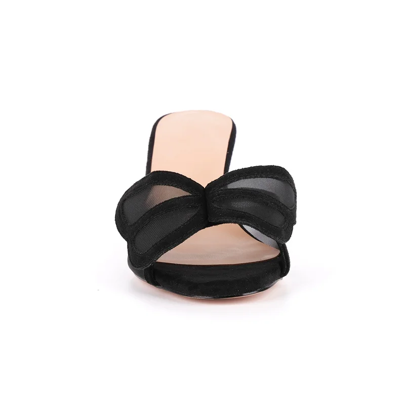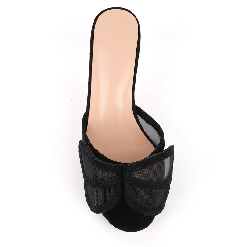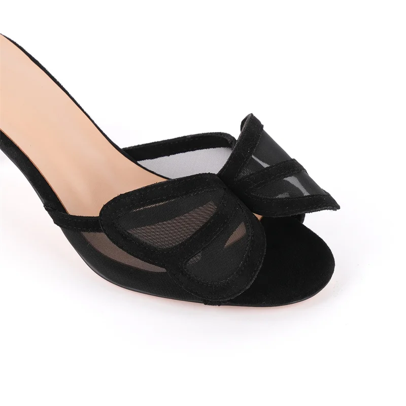Women Peep Toe Mules Faux Suede Kitten Heel Slip On Mules Sandals
