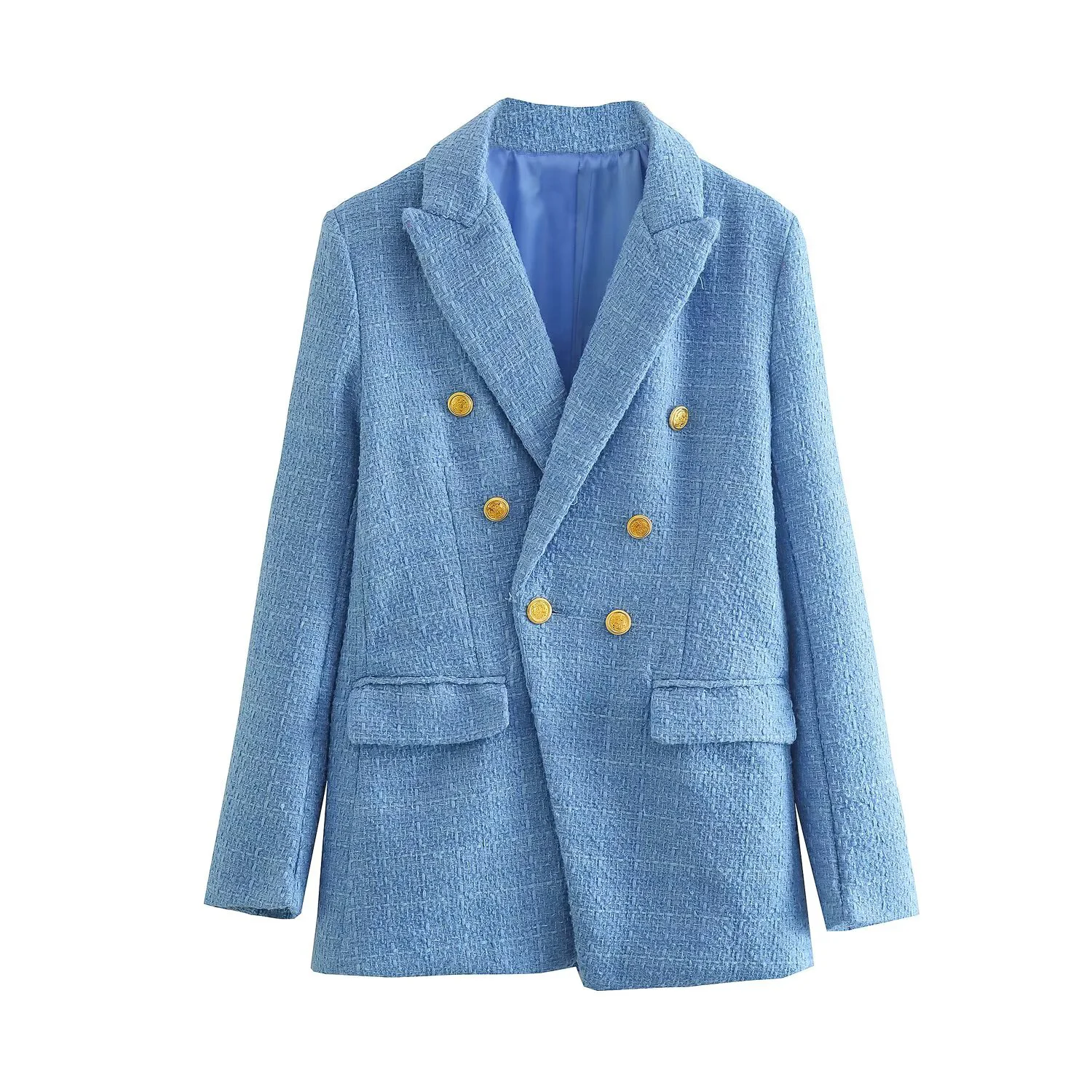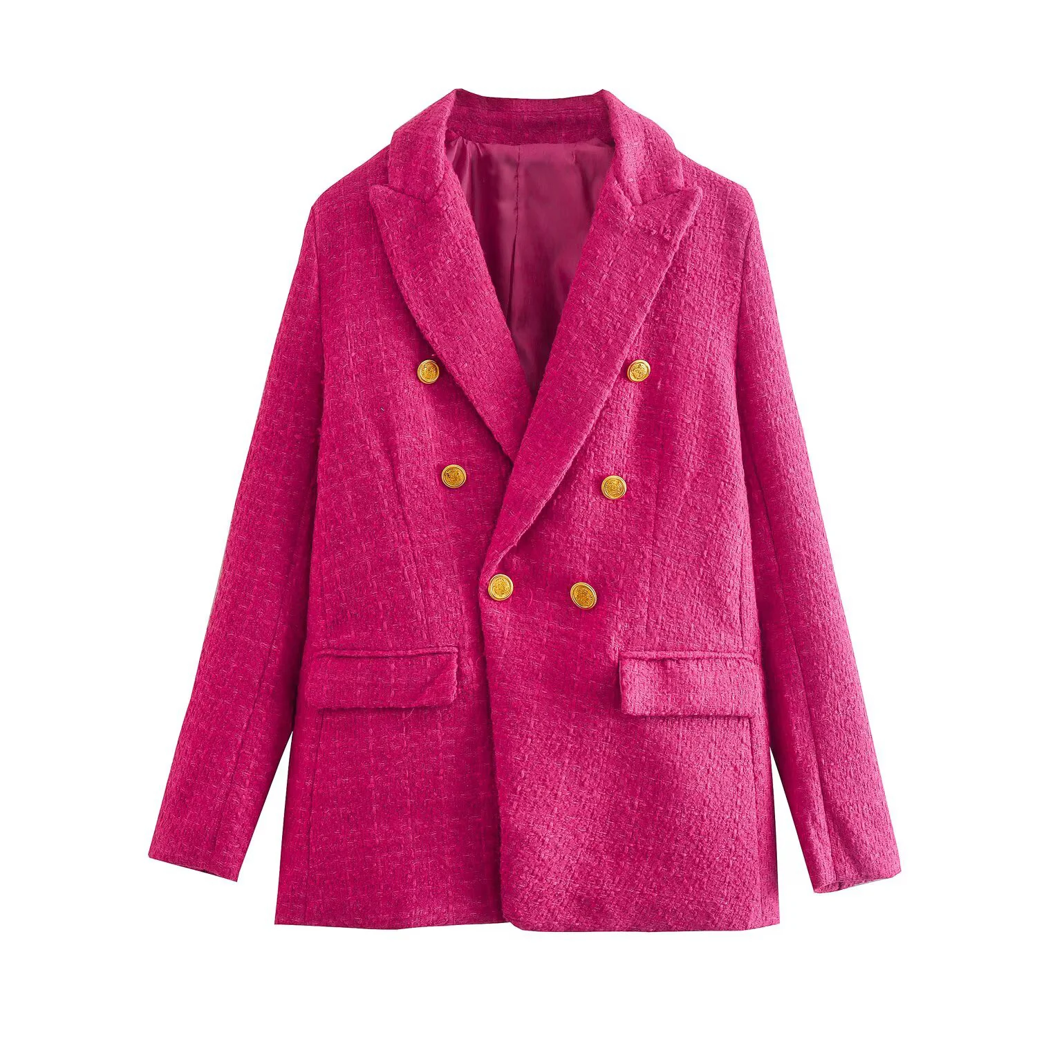 Women's Fashion Spring And Autumn Double Breasted Checkered Suit Jacket Retro Long Sleeved Pocket Suit Jacket