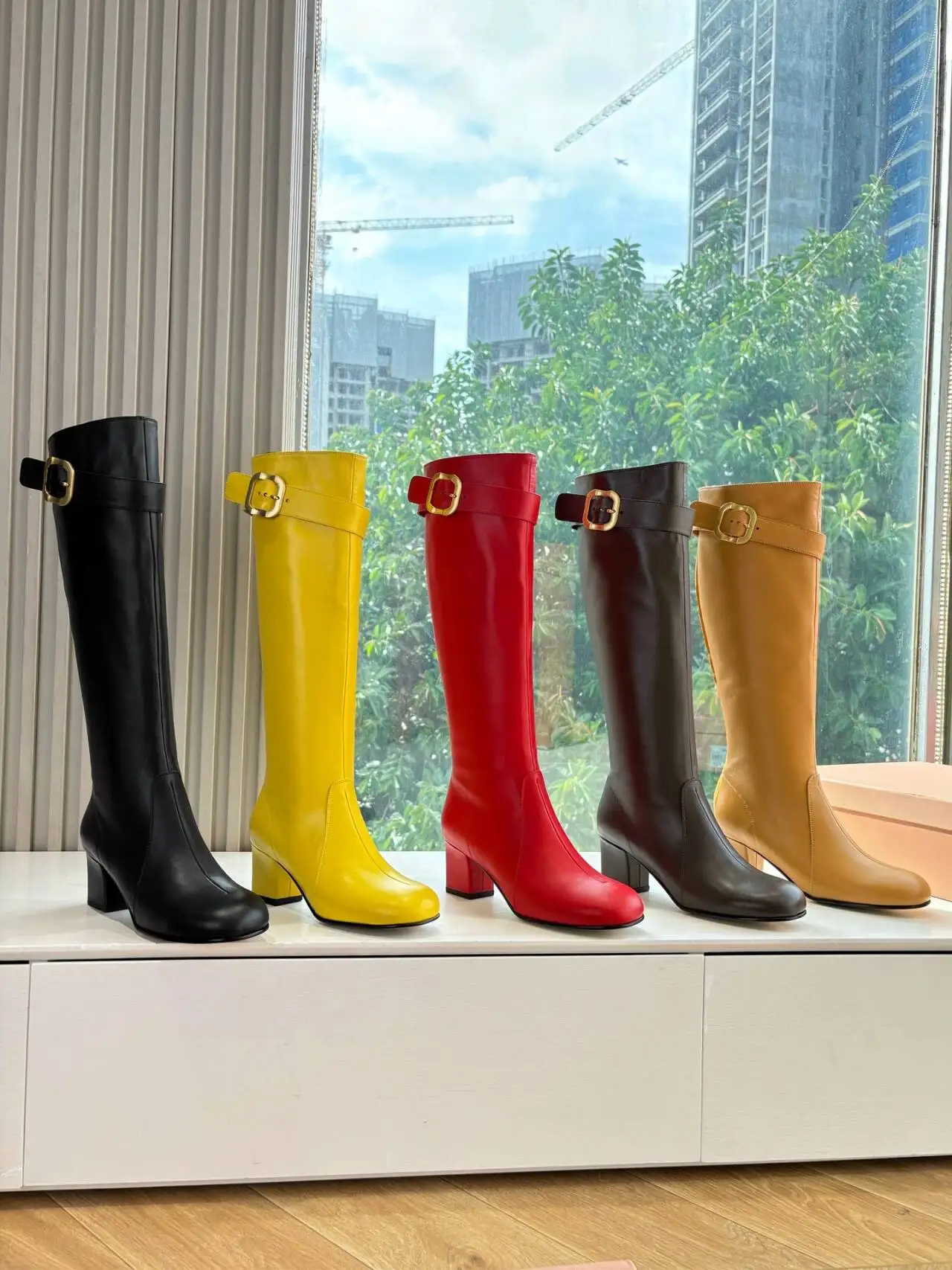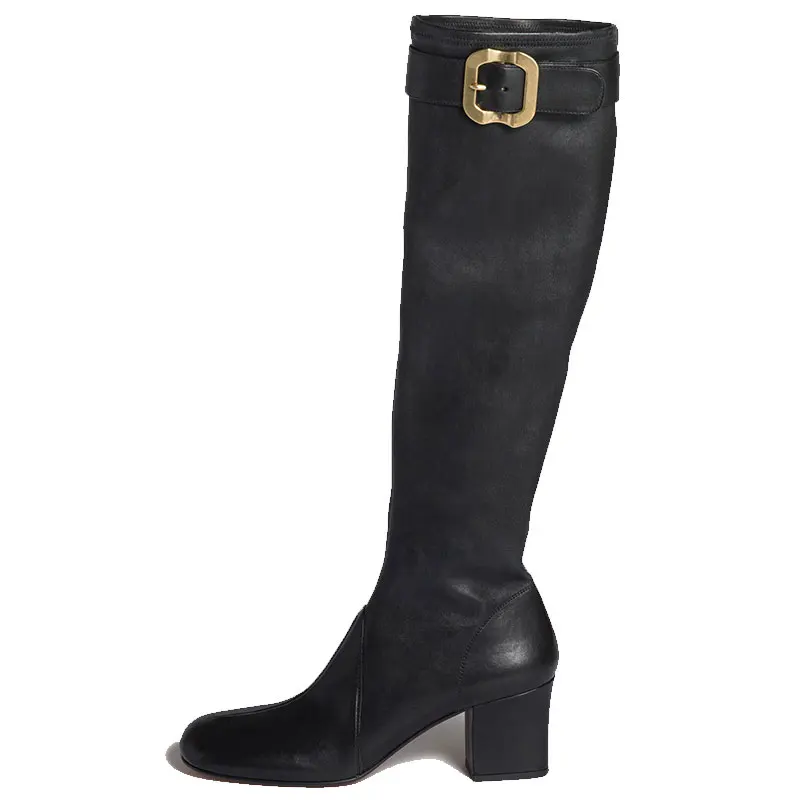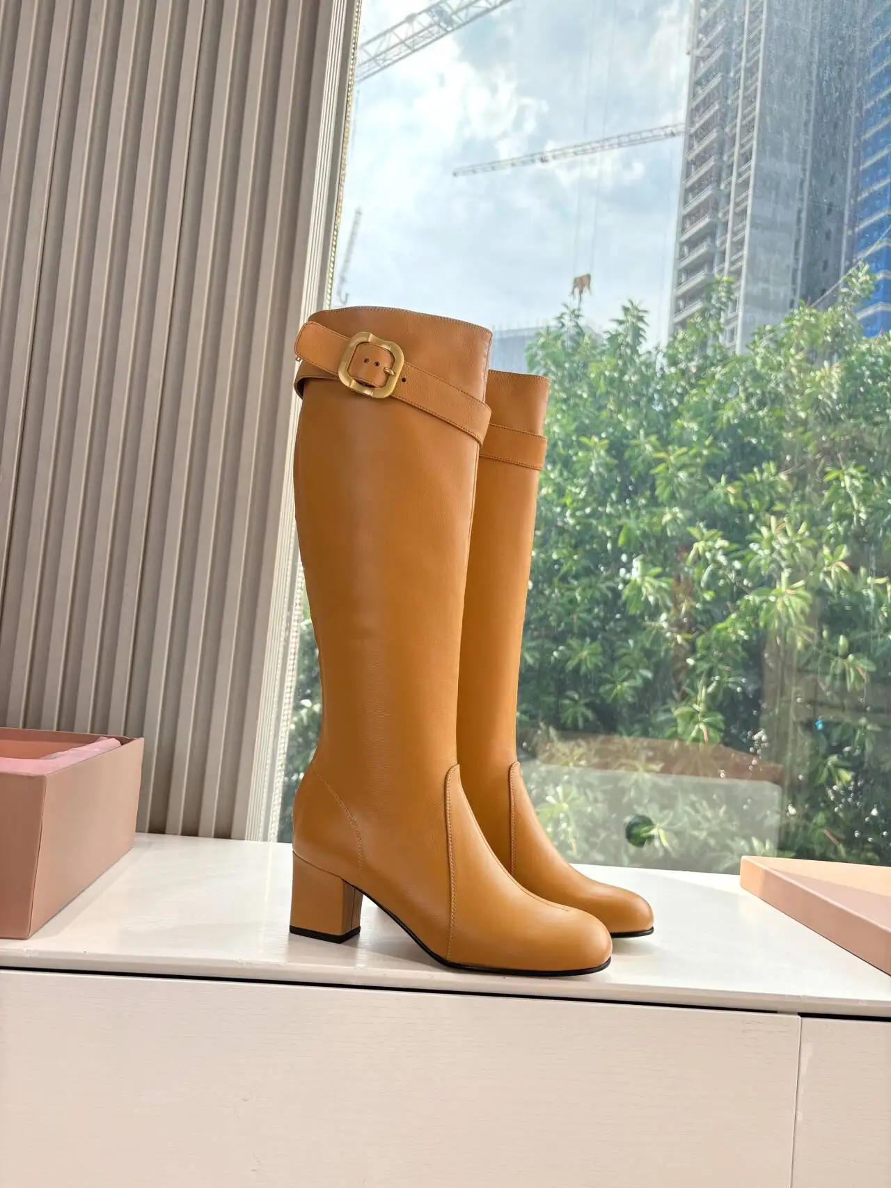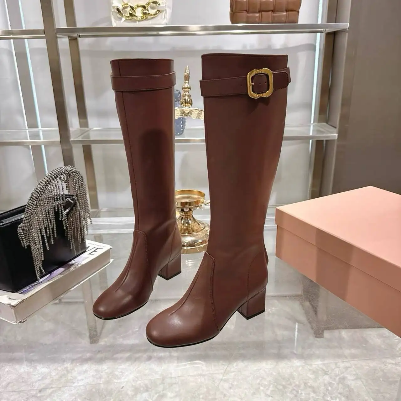 Women's New Thick High Heels Knee High Boots Autumn and Winter Round Toe Buckle Fashionable Mid Heel Boots Women's Short Boots