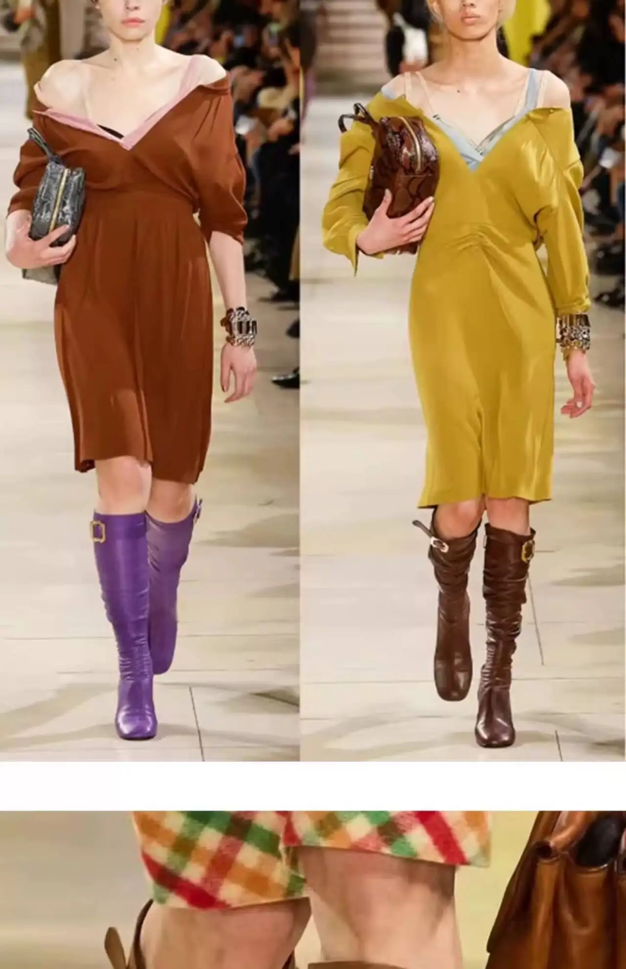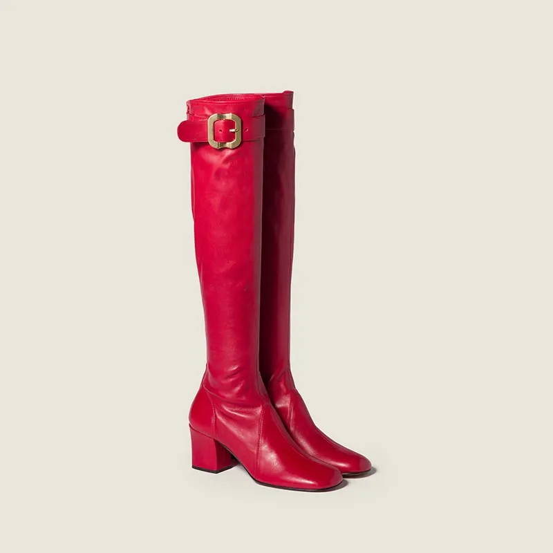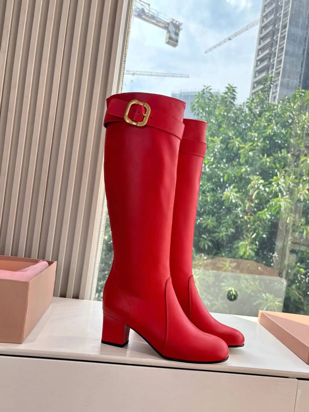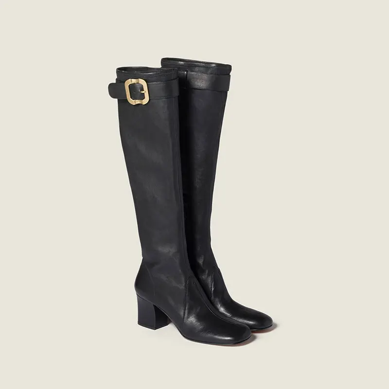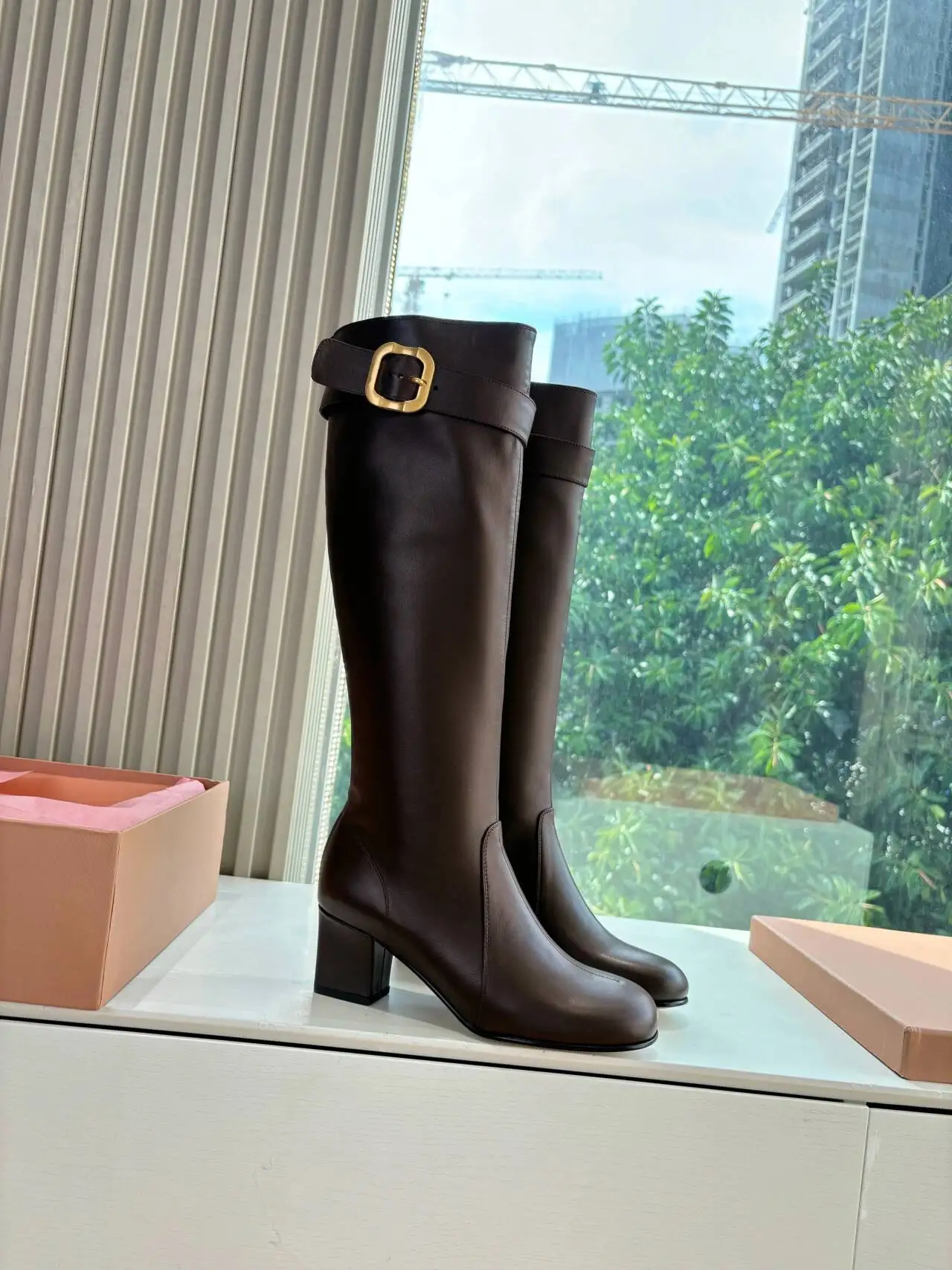 Women's New Thick High Heels Knee High Boots Autumn and Winter Round Toe Buckle Fashionable Mid Heel Boots Women's Short Boots