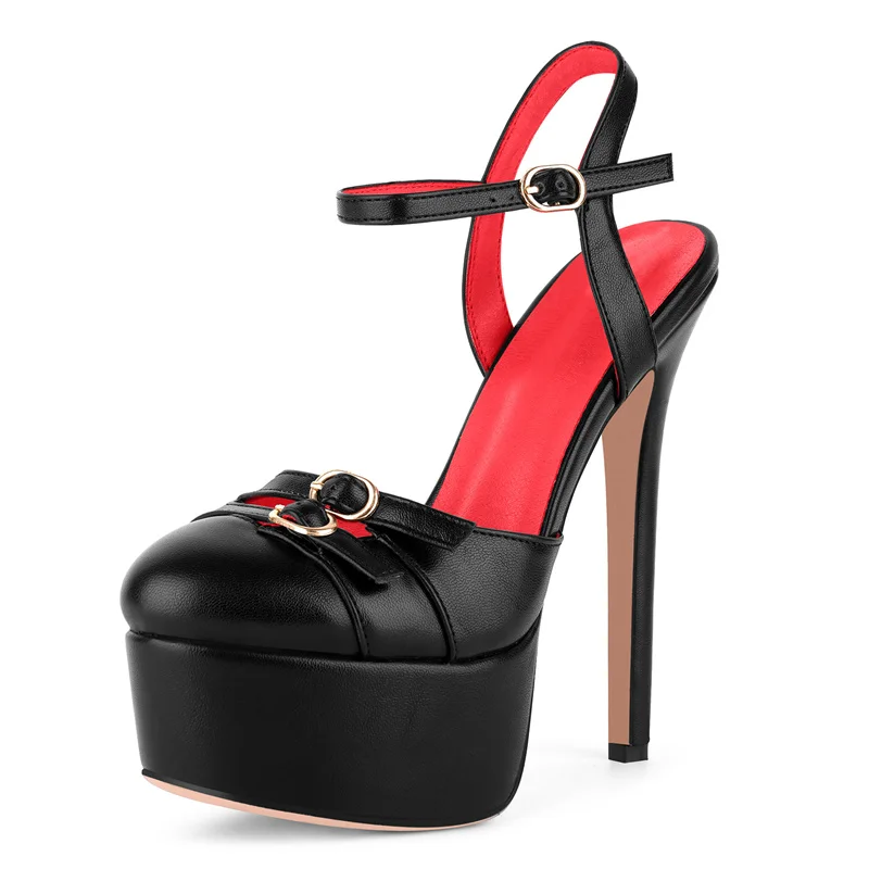 Womens Round Toe Platform Slingback Ankle Lace-up Pumps Big Size Fashion Party Dress Sexy Heels